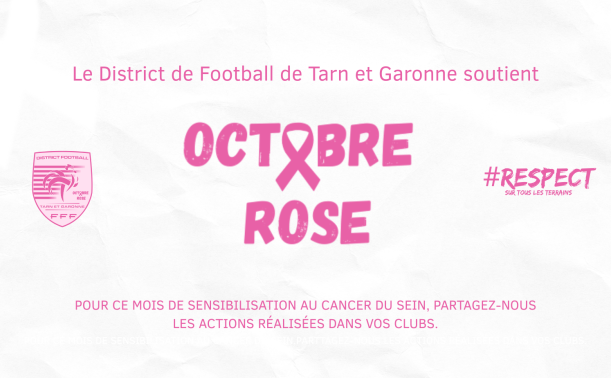 À l’occasion du mois de sensibilisation Octobre Rose, le District de Football de Tarn-et-Garonne s’engage une nouvelle fois aux côtés de la lutte contre le cancer du sein. Tout au long du mois d’octobre, clubs, éducateurs, joueurs, dirigeants, bénévoles et supporters sont invités à se mobiliser pour...