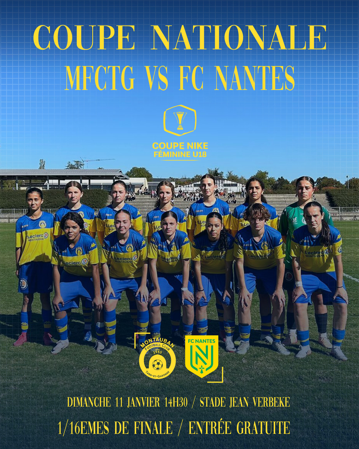 Ce dimanche 11 janvier à 14h30, le Montauban FCTG accueillera le FC Nantes au stade Jean Verbeke, à l’occasion des 1/16es de finale de la Coupe Nationale U18 Féminine (Coupe...